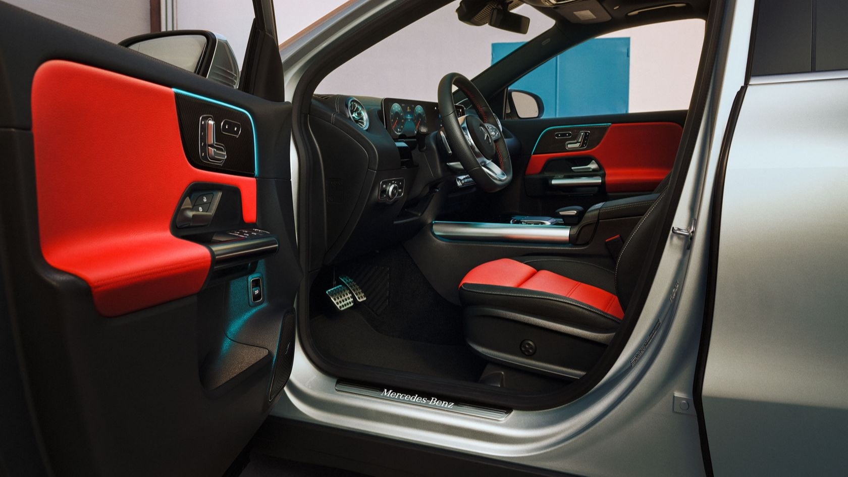 подсветка накладок порогов с надписью Mercedes-Benz нового Mercedes-Benz GLA.