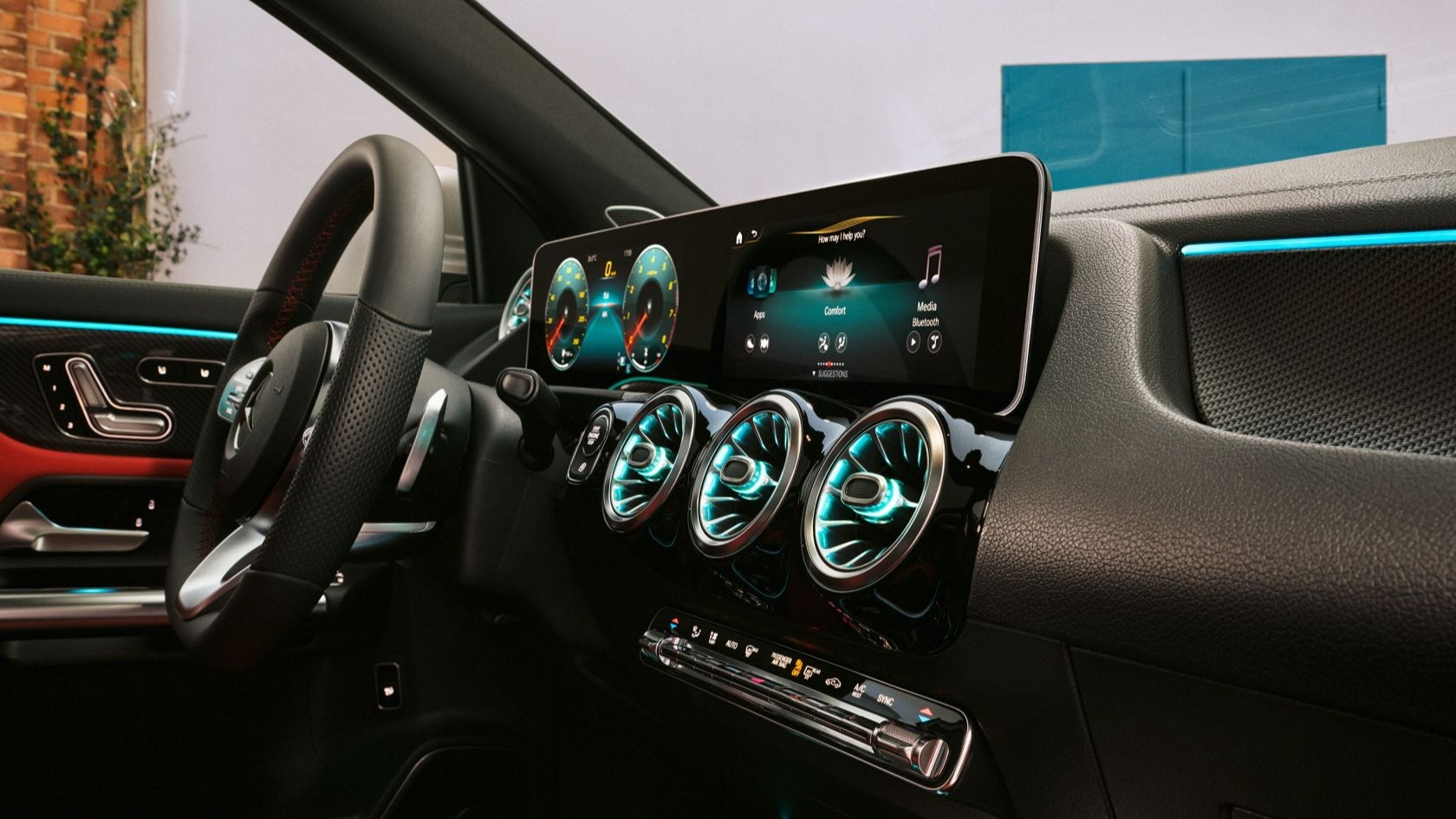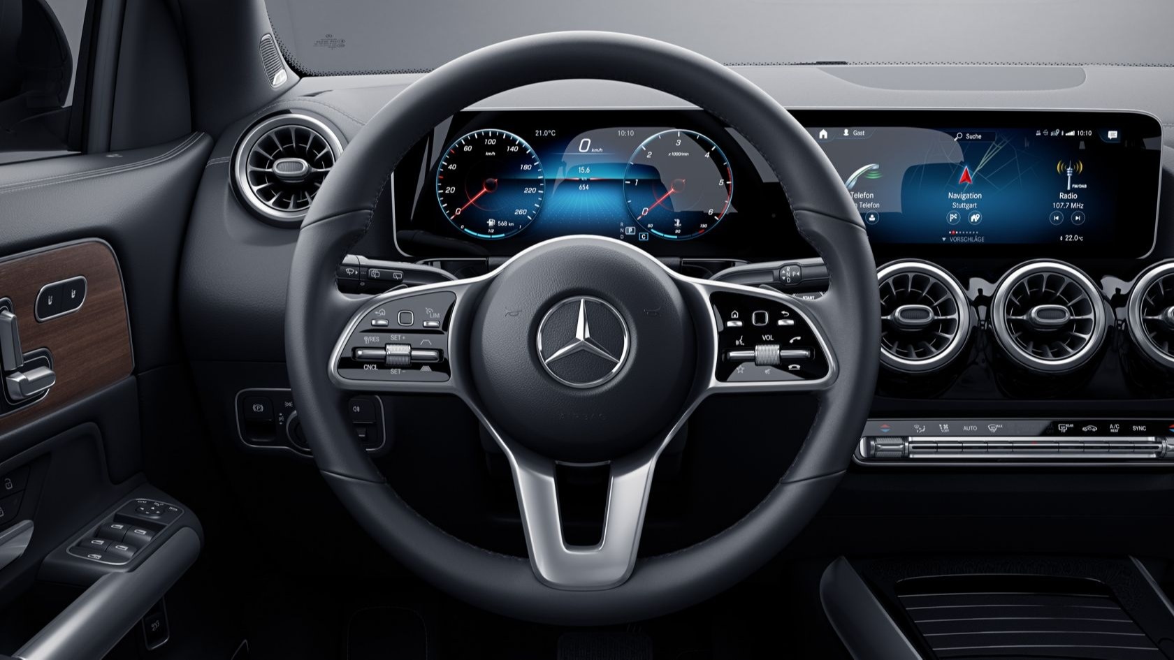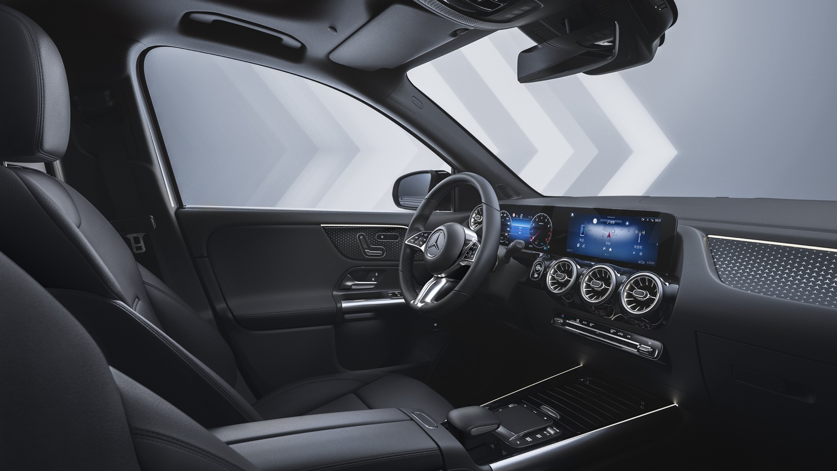 Салон нового Mercedes-Benz GLA - это пространство, оформленное в духе самых горячих стилистических и цифровых трендов. Интерьер прорисован плавными и резкими линиями для достижения яркого и эмоционального визуального эффекта. Особые акценты: широкоформатный дисплей передней панели, а также вентиляционные дефлекторы с подсветкой выполнены в прогрессивно-спортивном стиле.